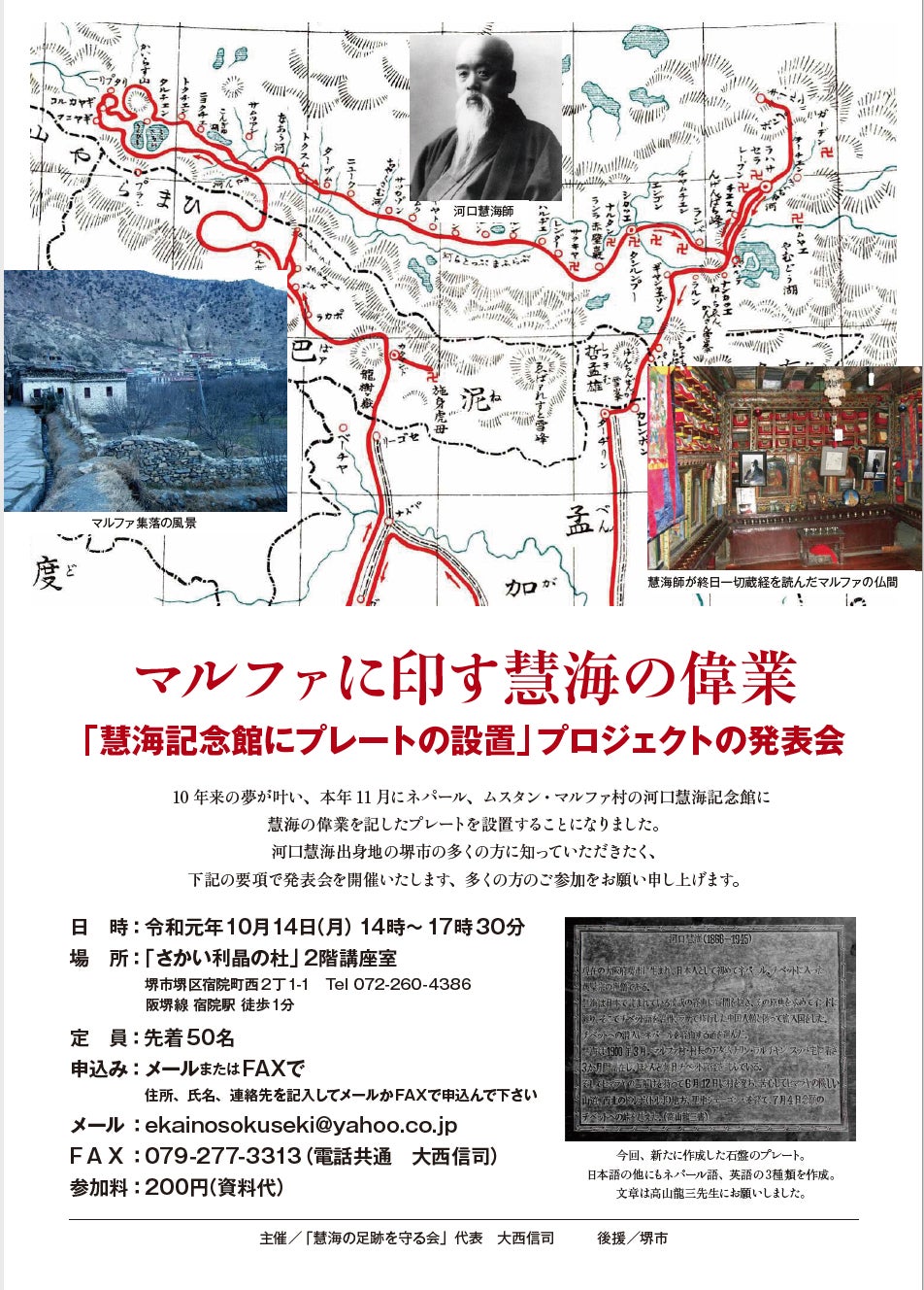 主催:「慧海の足跡を守る会」代表 大西信司