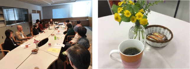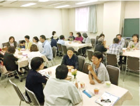 後半の約2時間はサロンタイムとして参加の方で自由に話をする時間にしています。テーブルごとにファシリエータとして専門職のスタッフが入り、会話が円滑に進むようお手伝いもしています。