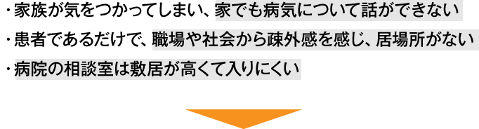 がん闘病中の患者さん・家族が、少しでも安心につながるような場所や情報を提供していきます。