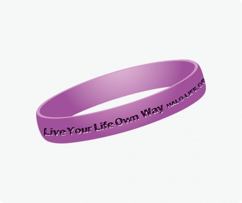 がん患者サポートのテーマカラー、ラベンダー色のラバーバンドです。