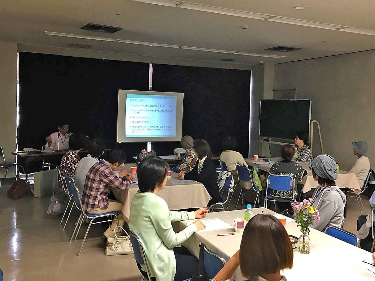 サロンの前半は、ミニ講座として、がんサバイバー、医療・福祉専門職などを招き、講演を行っています。患者さんへの知識になる情報提供の目的と、初めて来る方への来場のきっかけになればと思っています。