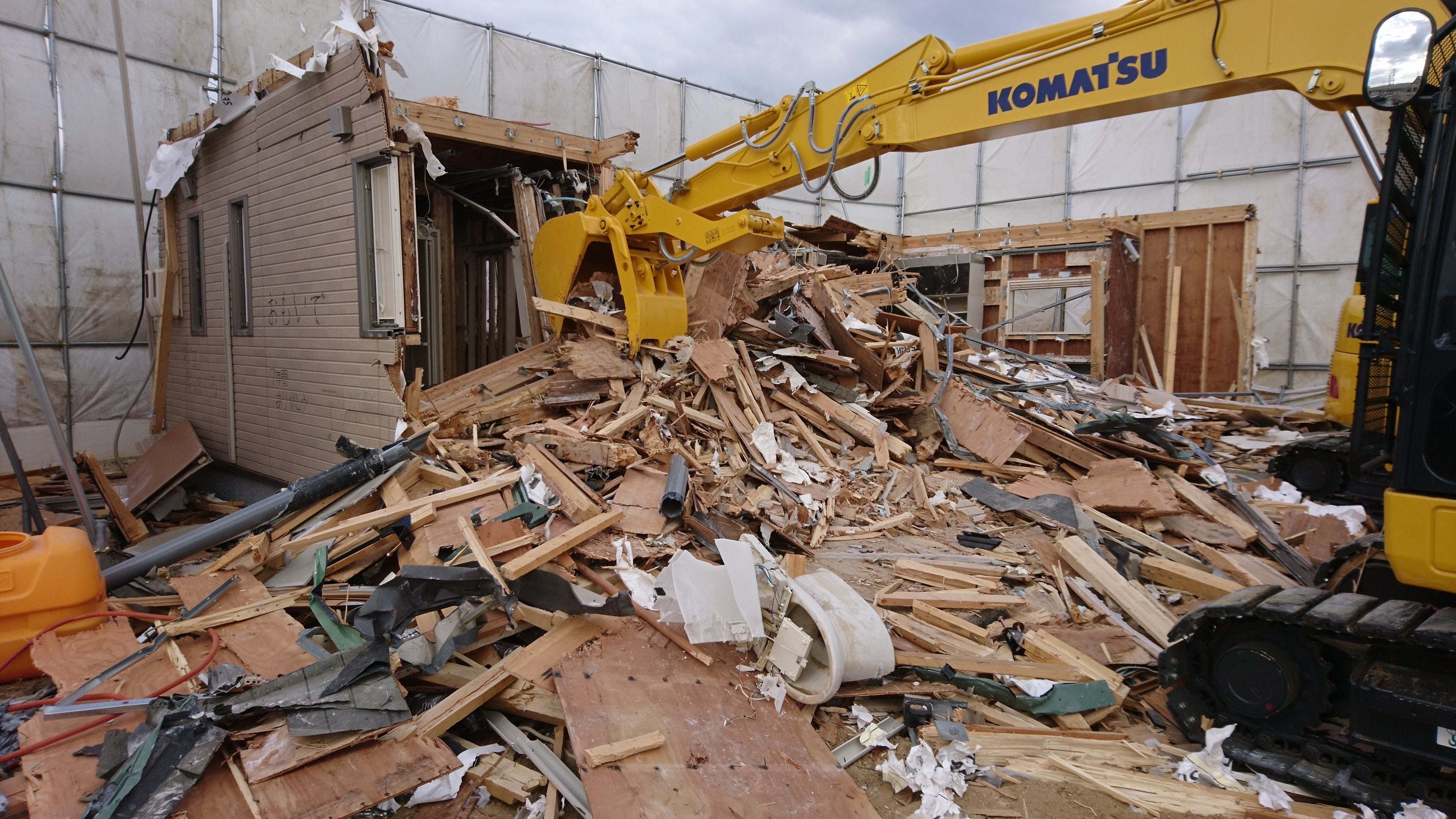 しかし、全国からのボランティアの方々のお助けもあり、日々復興に向けて進んでいます。※復興に向け解体される家