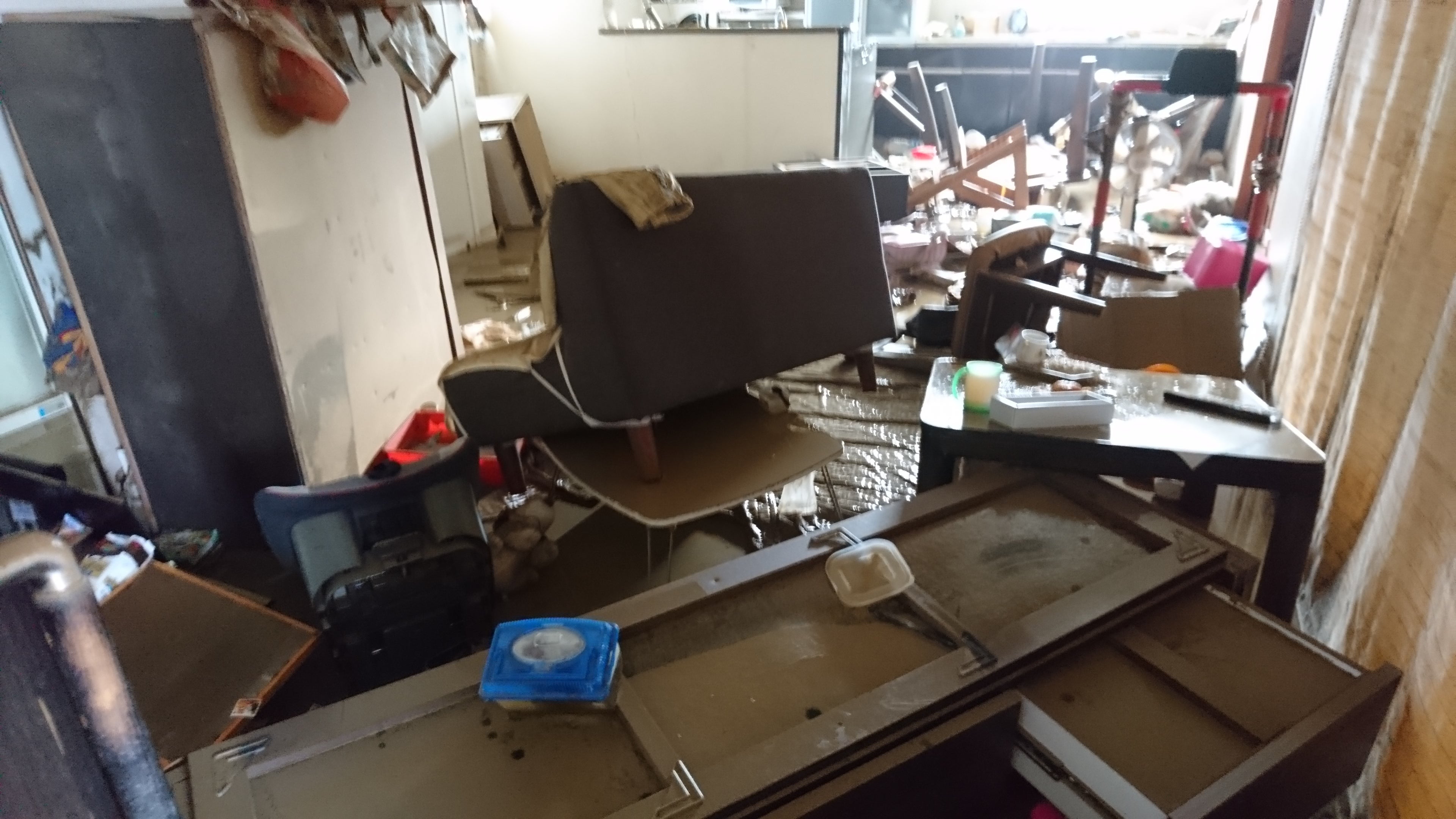 実行委員長を務めてはいますが、まだまだ地域の方々との繋がりが薄いのだと感じた瞬間でした。※有井地区の被災住宅(1階室内)