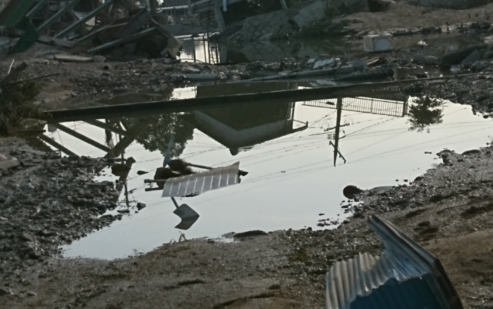 ほとんどの世帯が床上浸水以上の被害に遭い、場所によっては5mの浸水を記録し、しばらくの間、夜は真っ暗なゴーストタウンとなってしまいました。※保育園も完全浸水(有井地区)