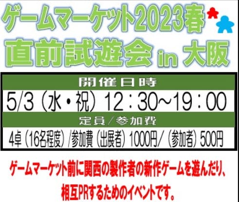 5/3(水)【ゲームマーケット2023春 直前試遊会in大阪】を開催します。