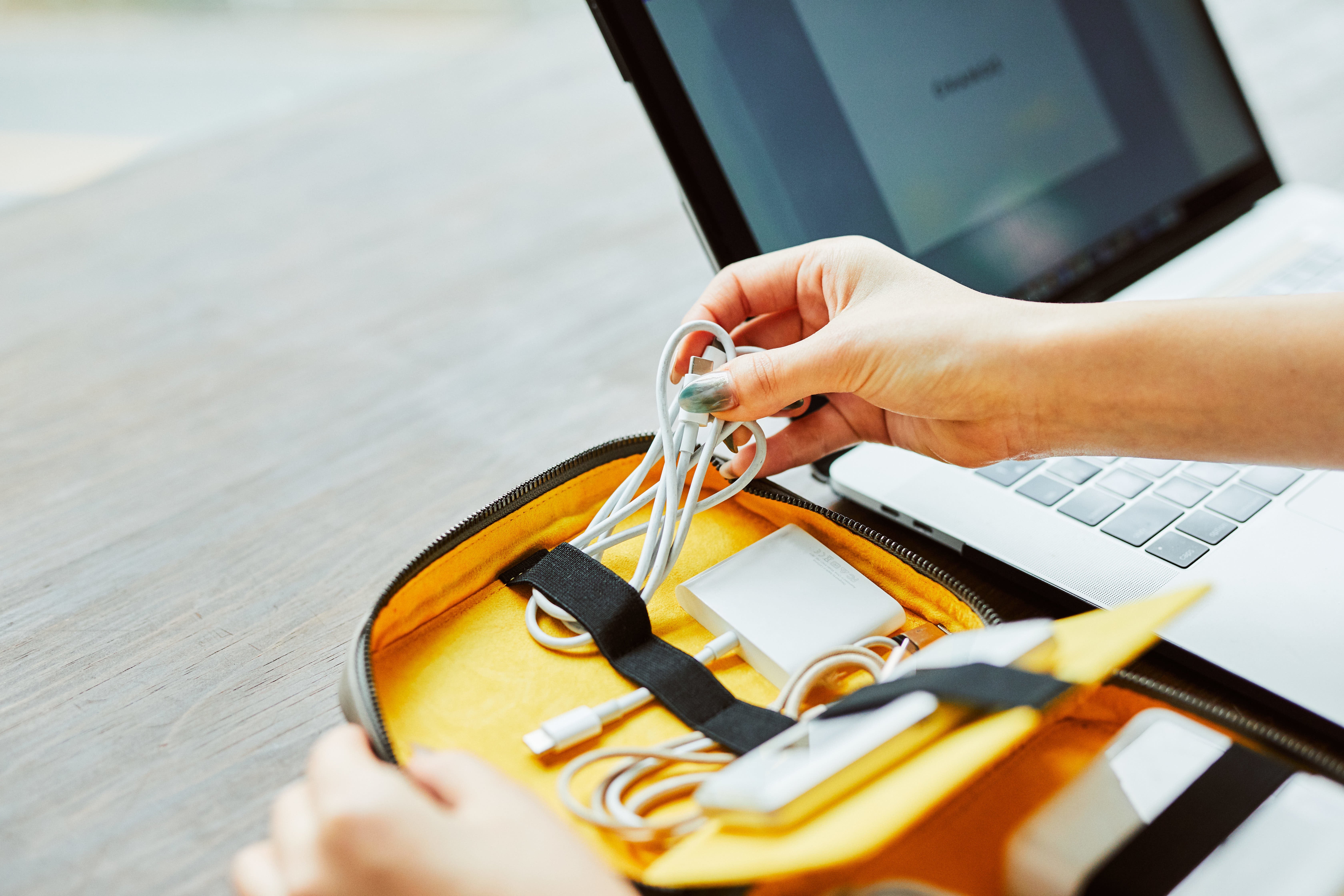 色んな場所に移動して仕事をする中で、ケーブルや充電器やWi-Fiを持ち歩いている中で、鞄の中でケーブルが絡まったりして取り出しづらいことに毎回ストレスを感じていました。市販のガジェットポーチもいくつか検討したのですが、毎日持ち歩きたくなるようなものもありませんでした。