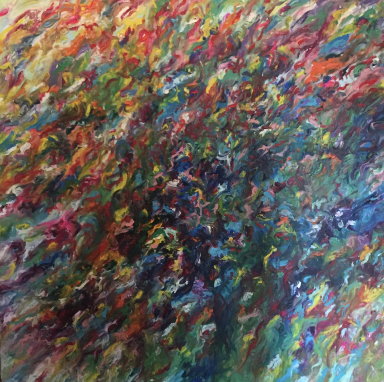特に私の作品は抽象度が高いので、見た人の頭の中でいろんな風に感じられるのではないでしょうか?それぞれの受け止め方をして頂き、いろんな風に想像してくださったことによって、作品が形を超えて変化、進化したことの証であり、またそれが私へのエネルギーとなって、再び創作への力となっていきます。(写真は2016年に油絵で描いた作品)
