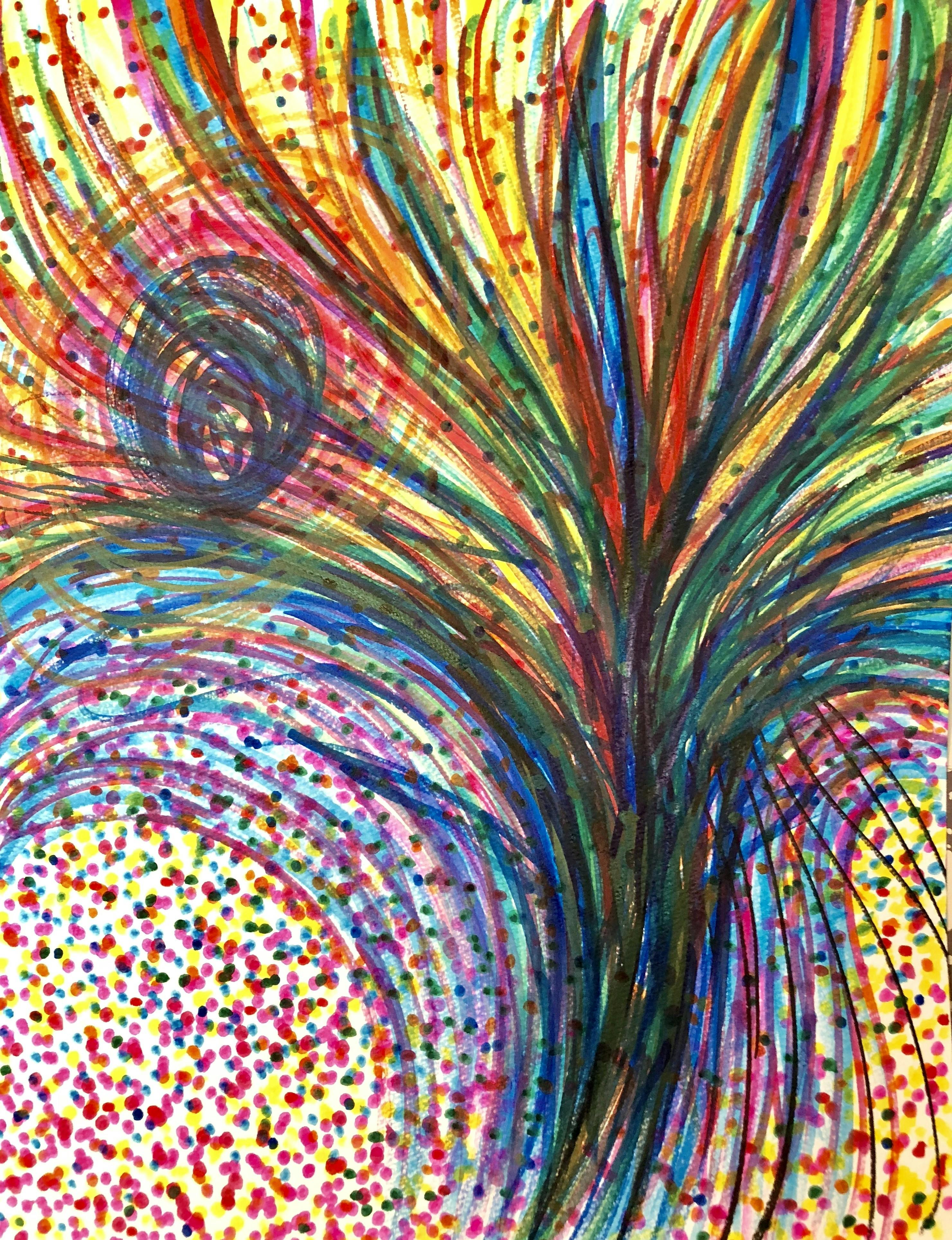 今回、令和元年こそ心機一転致しまして、また作品を制作するようになって10周年の年でもあり、私にあった発表の仕方を追求して、納得のできる新しい個展をして作品を発表していきたいと思うようになりました。(写真は昨年10月にアクリル絵具で筆の赴くままに5分ほどで描いた作品)