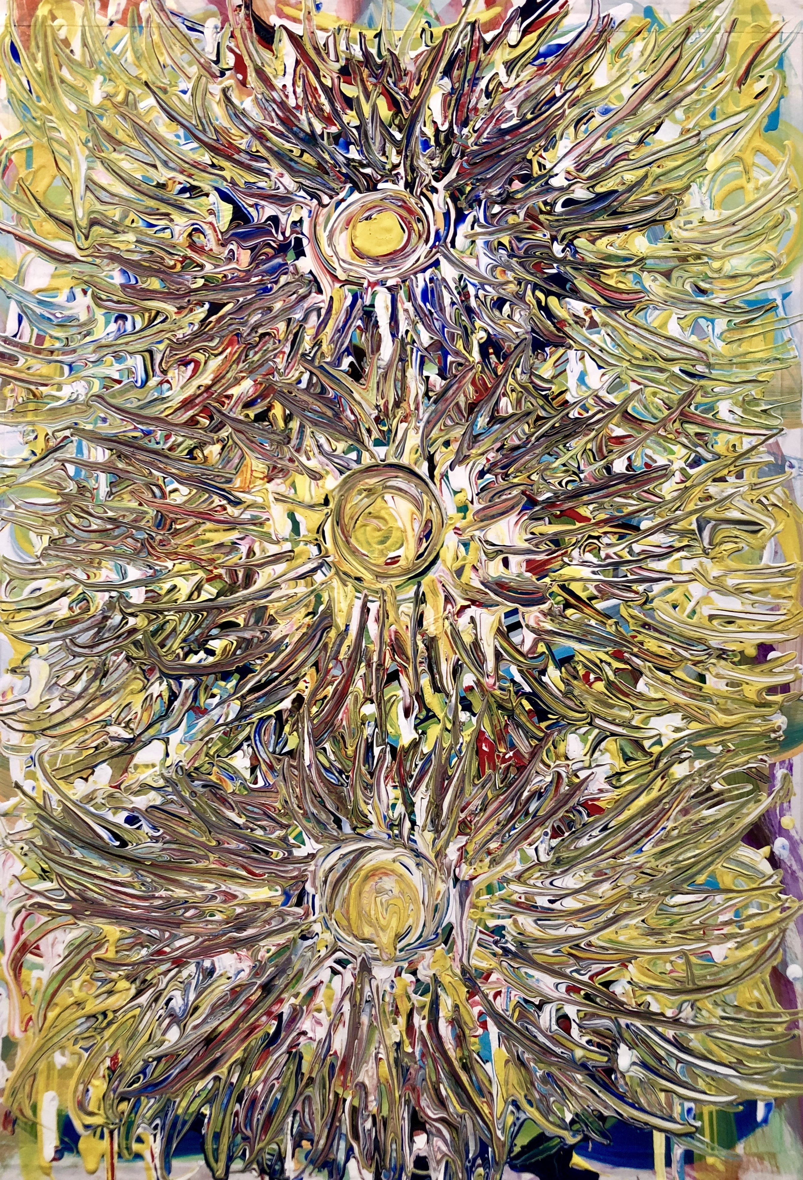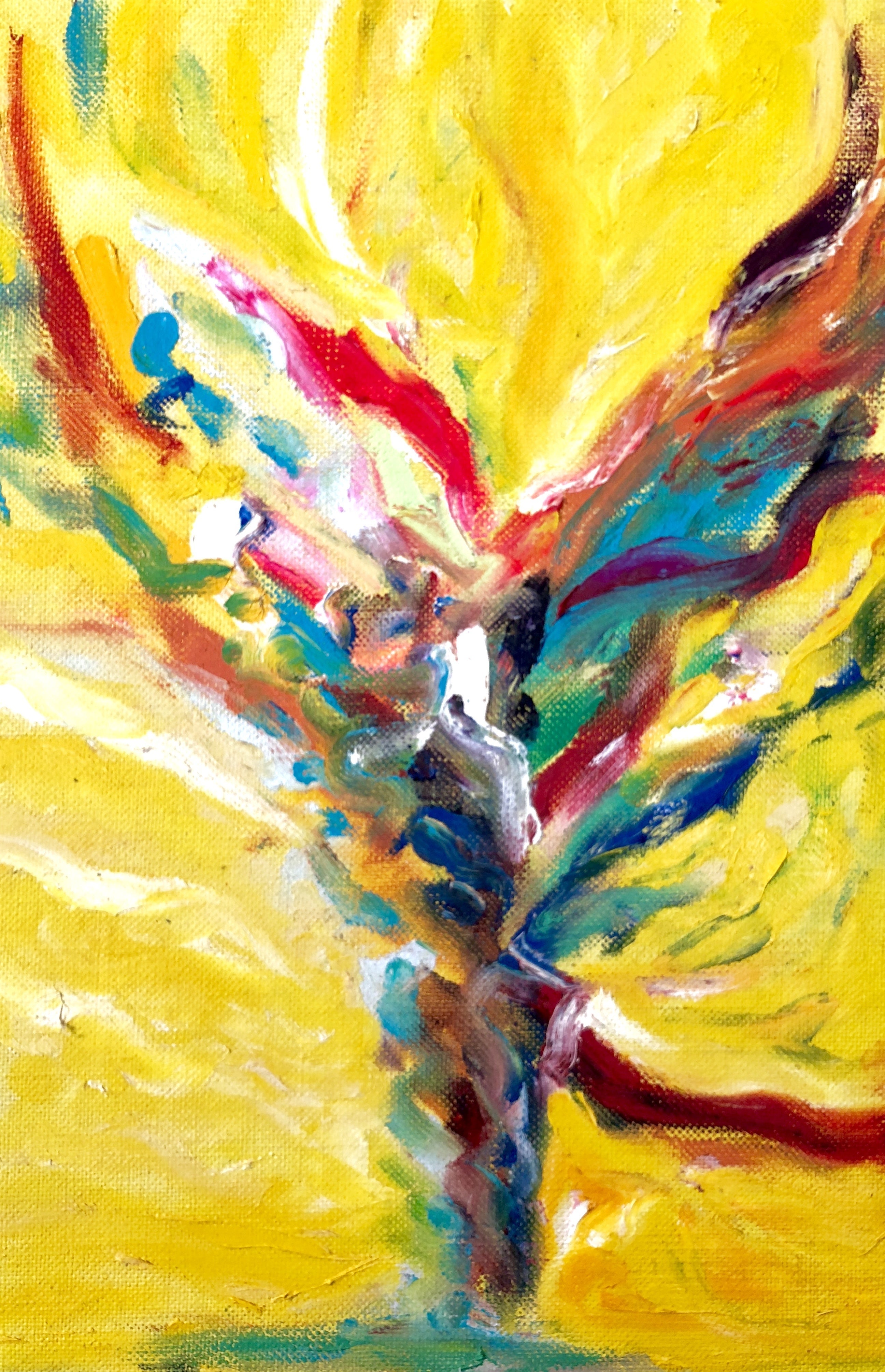 特に私の作品は抽象度が高いので、見た人の頭の中でいろんな風に感じられるのではないでしょうか?それぞれの受け止め方をして頂き、いろんな風に想像してくださったことによって、作品が形を超えて変化、進化したことの証であり、またそれが私へのエネルギーとなって、再び創作への力となっていきます。(写真は2016年に油絵で描いた作品)