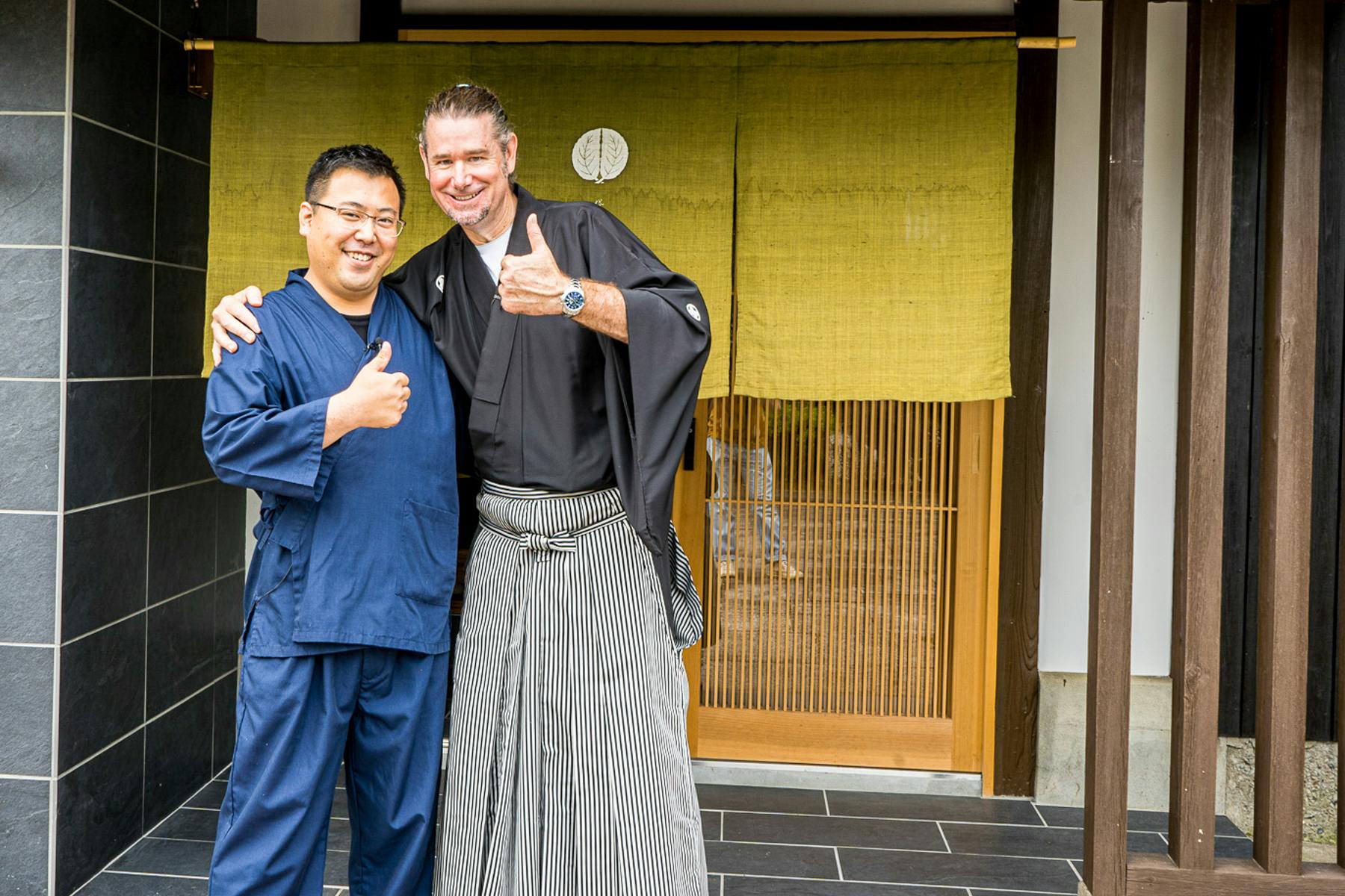 MCのジェイミー・ハバードさんは、茶心の玄関に入る前から大興奮!