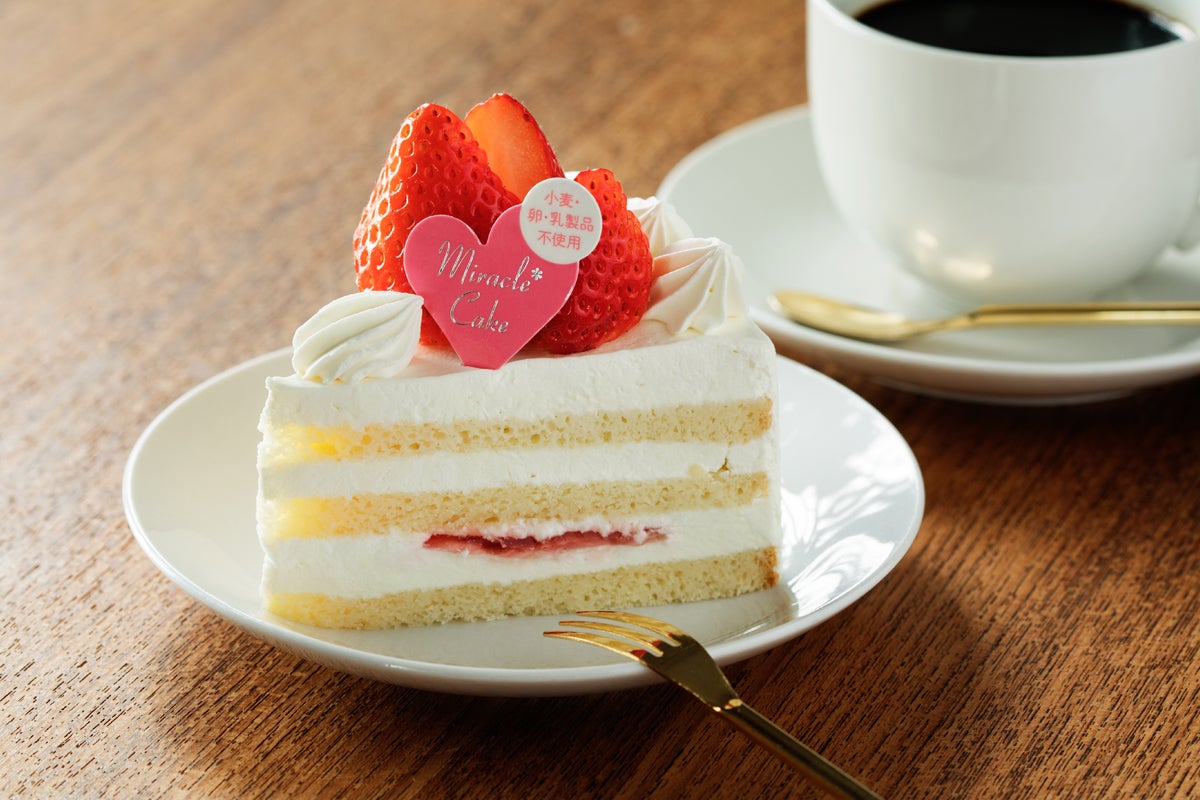 「おいしくなければケーキじゃない!!」その想いで、試行錯誤すること7年。完成したのが、小麦粉・卵・乳成分不使用でグルテンフリーの「ミラクル*ケーキ」です。アレルギーフリーのおいしい白いクリームは作るのが本当に難しかったので、できたときは「まるでミラクルだわっ!」と思った私。このアレルギーフリーのケーキの名前を、奇跡のケーキ「ミラクル*ケーキ」と名付けました。