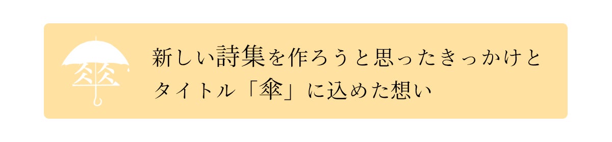 この詩集がそんな『傘』のような存在になれたらいいなと願いを込めてタイトルを決めました。