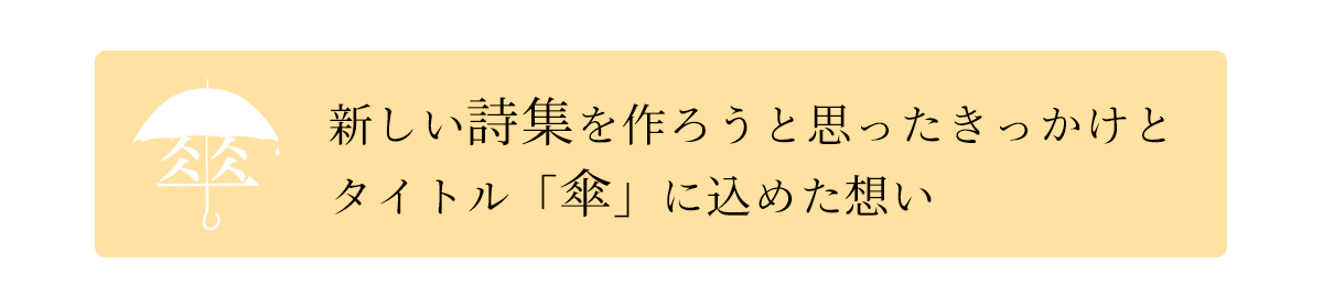 この詩集がそんな『傘』のような存在になれたらいいなと願いを込めてタイトルを決めました。