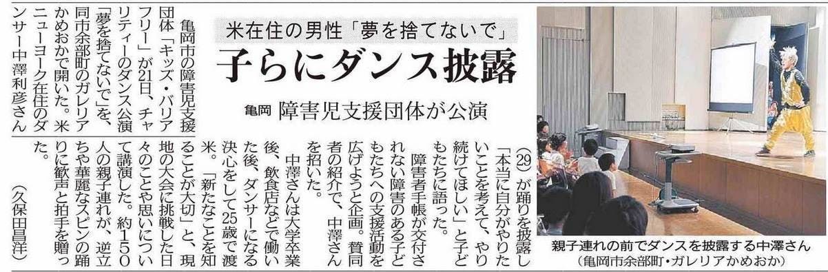2019/09/11 20:48改めまして、クラウドファンディング目標の103%519000円87名様からのご支援によって達成する事ができました!本当にラスト10分程で達成する事ができました。本当にありがとうございました。その時の模様はフェイスブックでもライブ放送をしたので、1時間半くらいダラダラと話していますが、よろしければご覧くださいませ。https://www.youtube.com/watch?v=67XR7EN2kbY&feature=youtu.be(お忙しい方は、1時間16分辺りから見ると達成した瞬間も見れます!)どなたがご支援したかというのも、頂いたリストが文字化けしていて、なかなか確認できなかったのですが、ようやく確認できましたので、これから少しずつご連絡させて頂こうと思っております。また、キャンプファイヤーの特性上、まだ支援頂いたお金は振り込まれてはいませんが、既に色々このプロジェクトも遂行しながら、同時に学校の方でも働きかけています。今の段階で仮決定しているスケジュールです。小中学校だけではなく、保育園や幼稚園などにも訪問する予定です。おかげさまで、予算の関係によって実施できない可能性を限りなくゼロにしているので、個人的に教育関係者などに連絡して、自分の経験が誰かの為になりそうな場所には、どんどん出向いていく予定です。━━━━━━━━━━━━━━━━━━━━・9/10,17,24坂井東小学校、新通小学校・9/13,20,27坂井輪小学校、木戸小学校・9/25,26南佐渡中学校、新穂中学校・10/1,8,15下山小学校、亀田小学校・10/2三条栄中央小学校・10/4三条第一中学校・10/7燕市吉田中学校 ・10/16燕市の保育園・10/17三条市の保育園・10/19愛知県豊田市旭中学校・11/22~29東京(板橋・国立)、埼玉(坂戸・高坂)の小中学校4校・12/2~6静岡県富士市の小中学校2校━━━━━━━━━━━━━━━━━━━━何か偉業を成し遂げ、世間で言われる『成功した人』のお話は、生きていく上で大きな指針となる情報や技術を得る事ができる。しかしながら、もしかしたらそれは今みなさんの手のひらにある、スマホで学べる事かもしれない。テレビやメディアであまり見る事のない『多くの人が知らないかもしれない人』のお話は、未完成かもしれないけど、それは想いになり、オンラインでは感じられない情熱を伝えられるかもしれない。それは決してみなさんの手のひらの上だけでは感じられないものになるはず。僕もこのような活動をしている中で、一番尊いのは、「現役」である事だと信じています。だからこそ、引退してからお話をするのではなくて、今その瞬間でしか語る事のできない、同じように自分の未来に向けて挑戦している人のお話が、一番心に響く。少なくとも僕はそう。だから直接会いに行って、触れられる距離感で踊り、話して、表現する。その距離感こそが、子ども達、いや我々にとっても、手を伸ばせば届く何かだと思うから。最初で最後の人生、まだ見ぬ世界を一緒に見に行きたい。またこちらでも色々ご報告させてください。改めまして、本当にありがとうございました。みなさまのご支援を必ず次の世代へ伝えて参ります。リターンのカレンダーも届きました!!10月の下旬には皆さまの所へお届けできるように配送致します!中澤利彦 もっと見る
