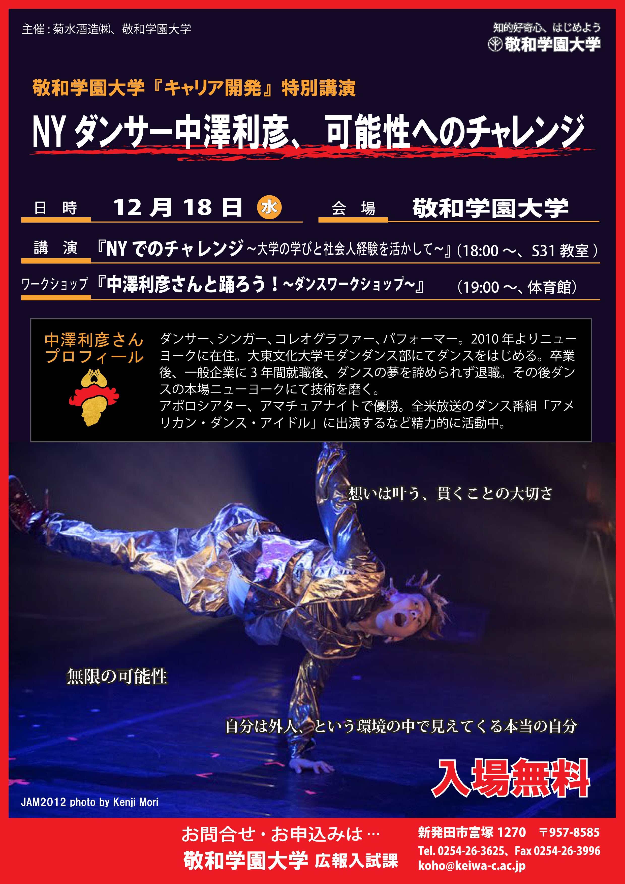 ニューヨークで現役でプロダンサーとして活動している、中澤利彦と申します。