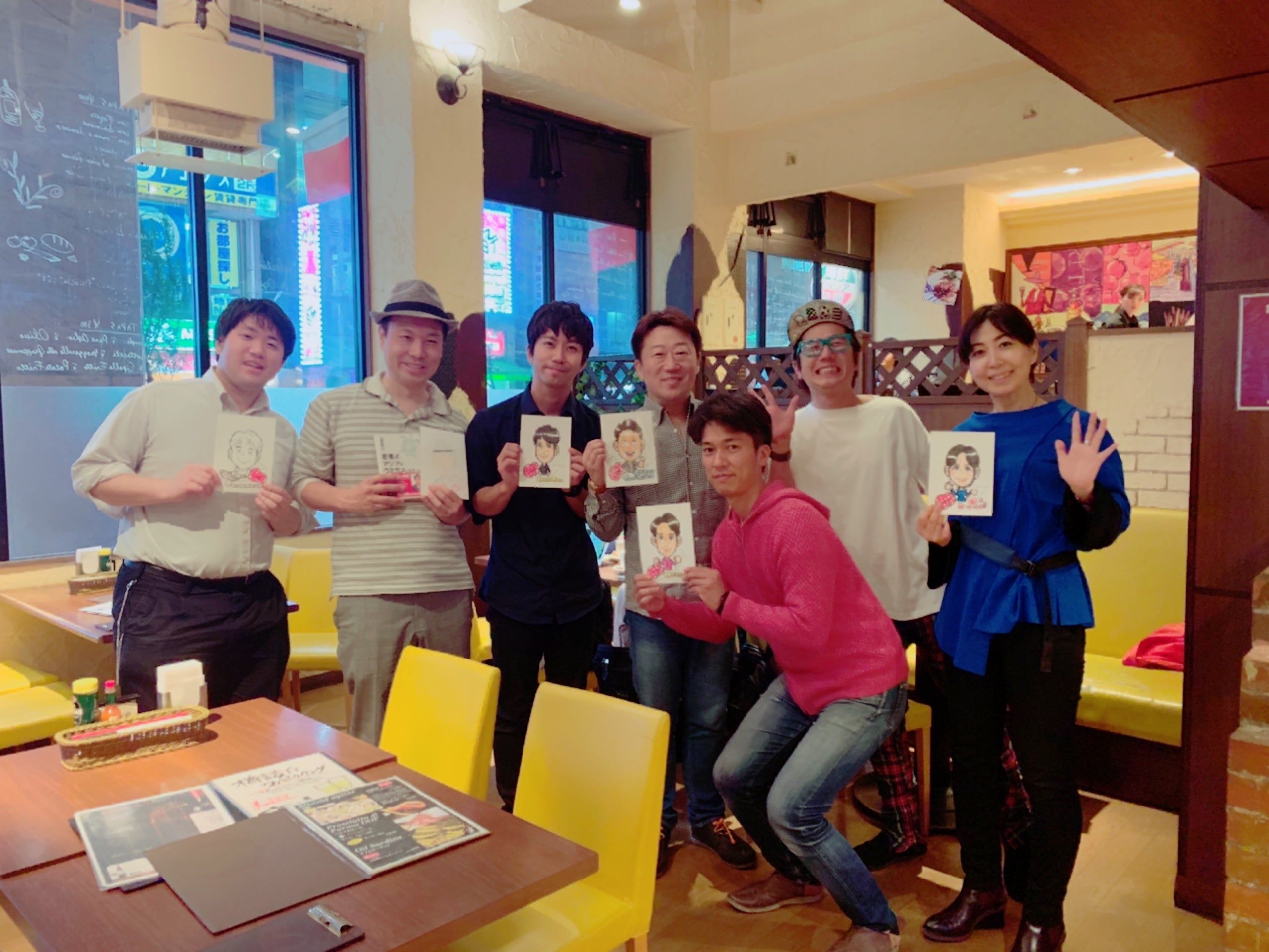 写真:シンガポール在住 エンジェル投資家の加藤順彦さんと、大分から駆けつけてくださったラクガキヤのマコさんと共に、ホリエモン祭inシンガポールの打ち合わせをする実行委員