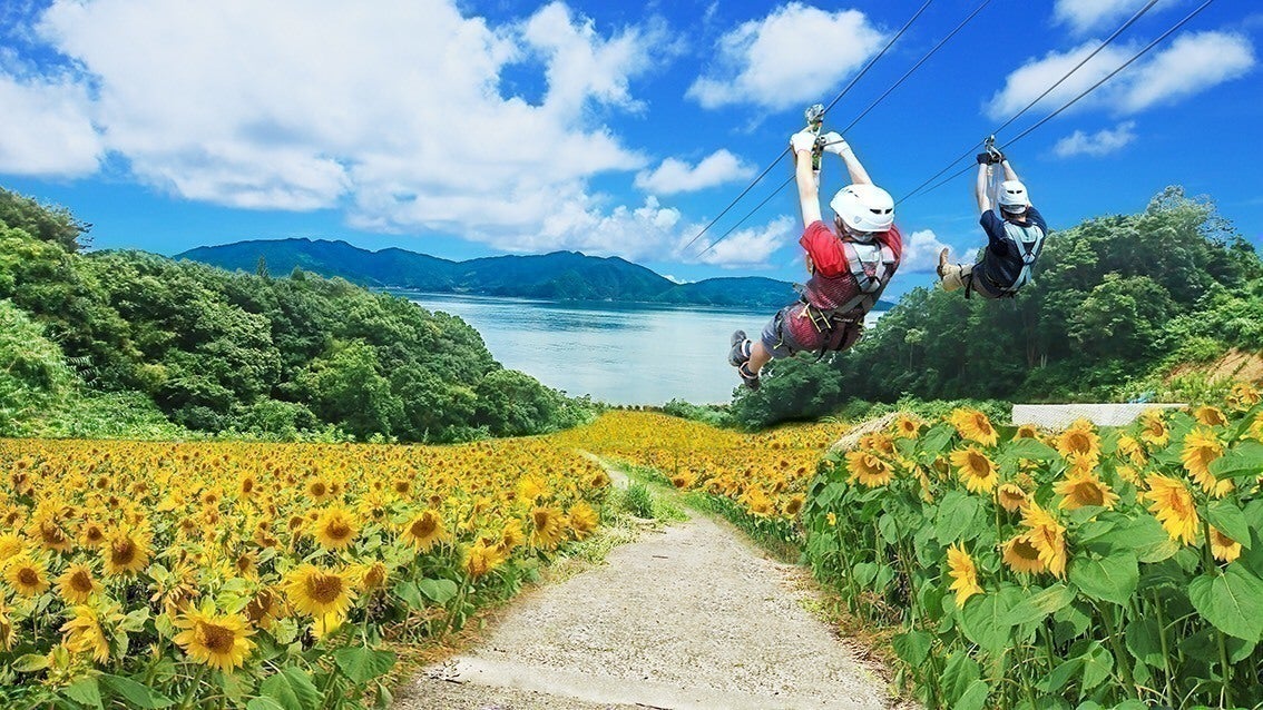 海とひまわりのジップラインの組み合わせは想像しただけでもワクワクします。