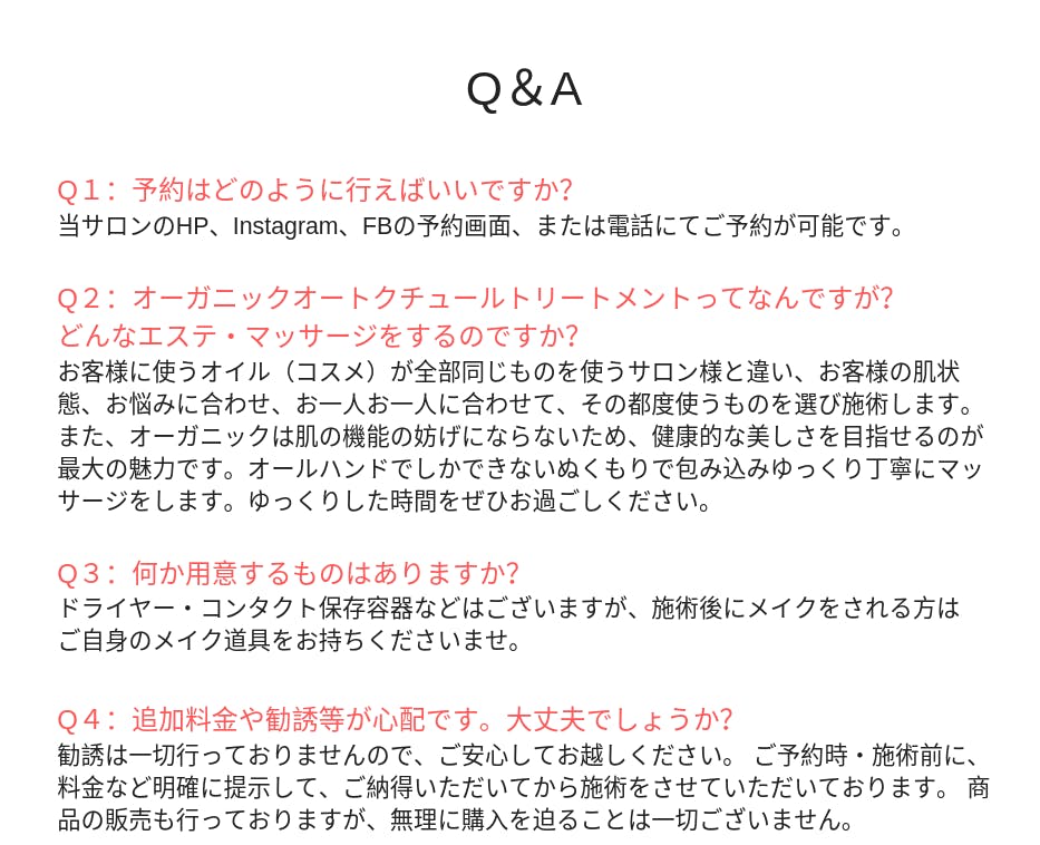 (プライベートサロンのため、詳細はご予約後にお知らせいたします。)
