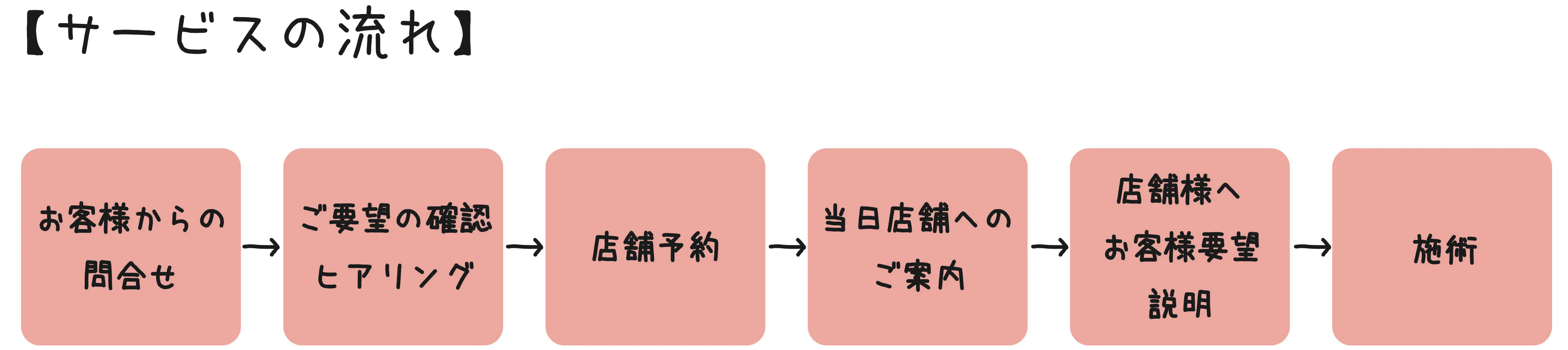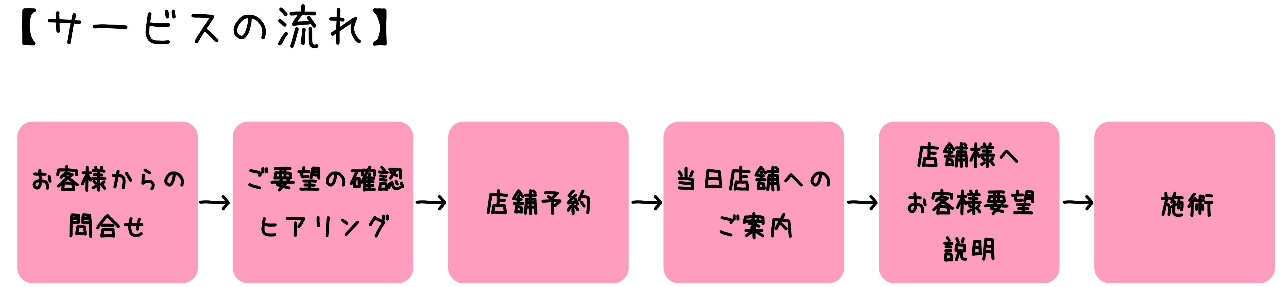 ホームページやSNSからお問い合わせいただいたお客様に事前にどのようなサービスを希望されるか細かくヒアリングをします。ご利用されるお客様に満足いただくことはもちろん施術される店舗様もストレスなくスムーズにサービスが行えるよう可能な限りの準備を行います。