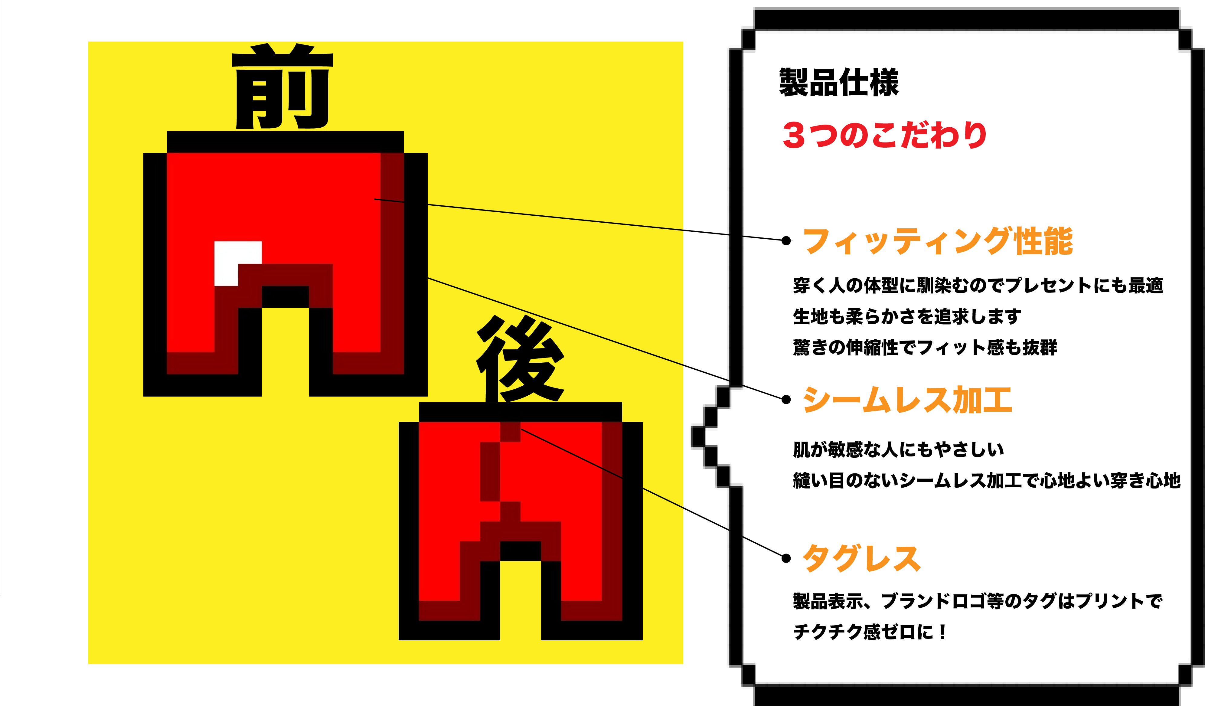 そこで自分たちが好きで熱中してたゲームのビット感のデザインともらったボクサーパンツの掛け合わせが