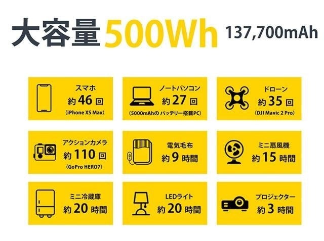 バッテリー容量は約137,700mAh 重量は約6.5kg