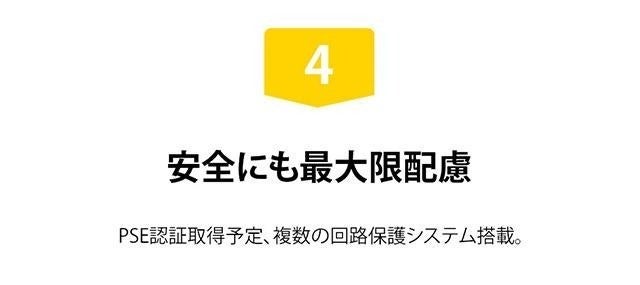 開発中の新商品のため、PSE認証は現在取得申請準備中です。皆様のお手元へ届けられる時にはPSE認証がされた製品が届きます。認証が取れ次第、活動レポートにてご報告いたします。また、様々な認証で認められたメーカー「PowerOak」により製造されますので、ご安心してお使いいただけます。