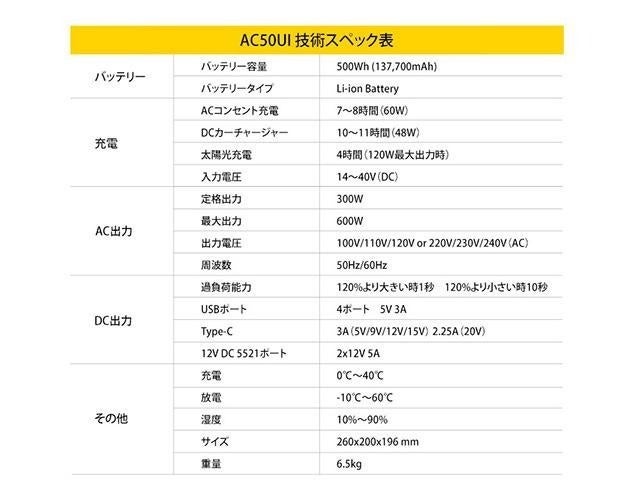 ポータブル電源「AC50UI」はただ単に大容量、大出力を極めたスペックではありません。大きな出力や容量にはデメリットもあります。充電に時間がかかる、10kg以上の重量、そもそも使い切れないほどの容量 etc…