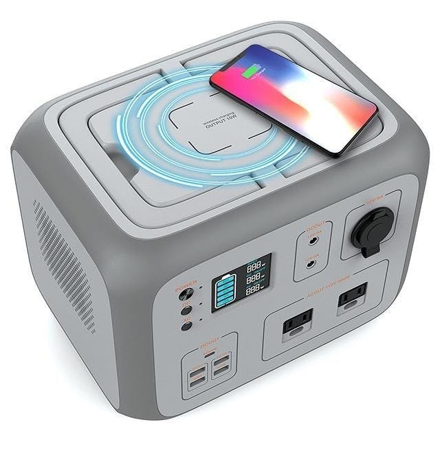 ポータブル電源の上の平たい部分にワイヤレス充電機能を搭載。