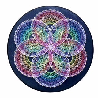 曼荼羅は、仏教の世界観を表現した絵画ですが、糸かけ曼荼羅は仏教とは関係なく、色鮮やかな曼荼羅アートです。