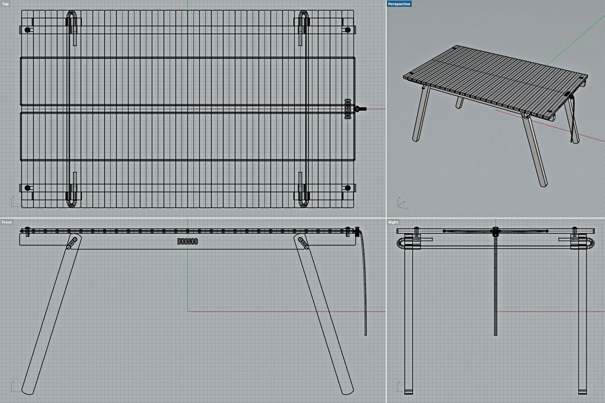 - 「DOOGOO TIME THE TABLE 420」は、内部にコードを通して天板同士を連結し、コードロックで締め付ける方法によって、「隙間のない天板」を実現しました。