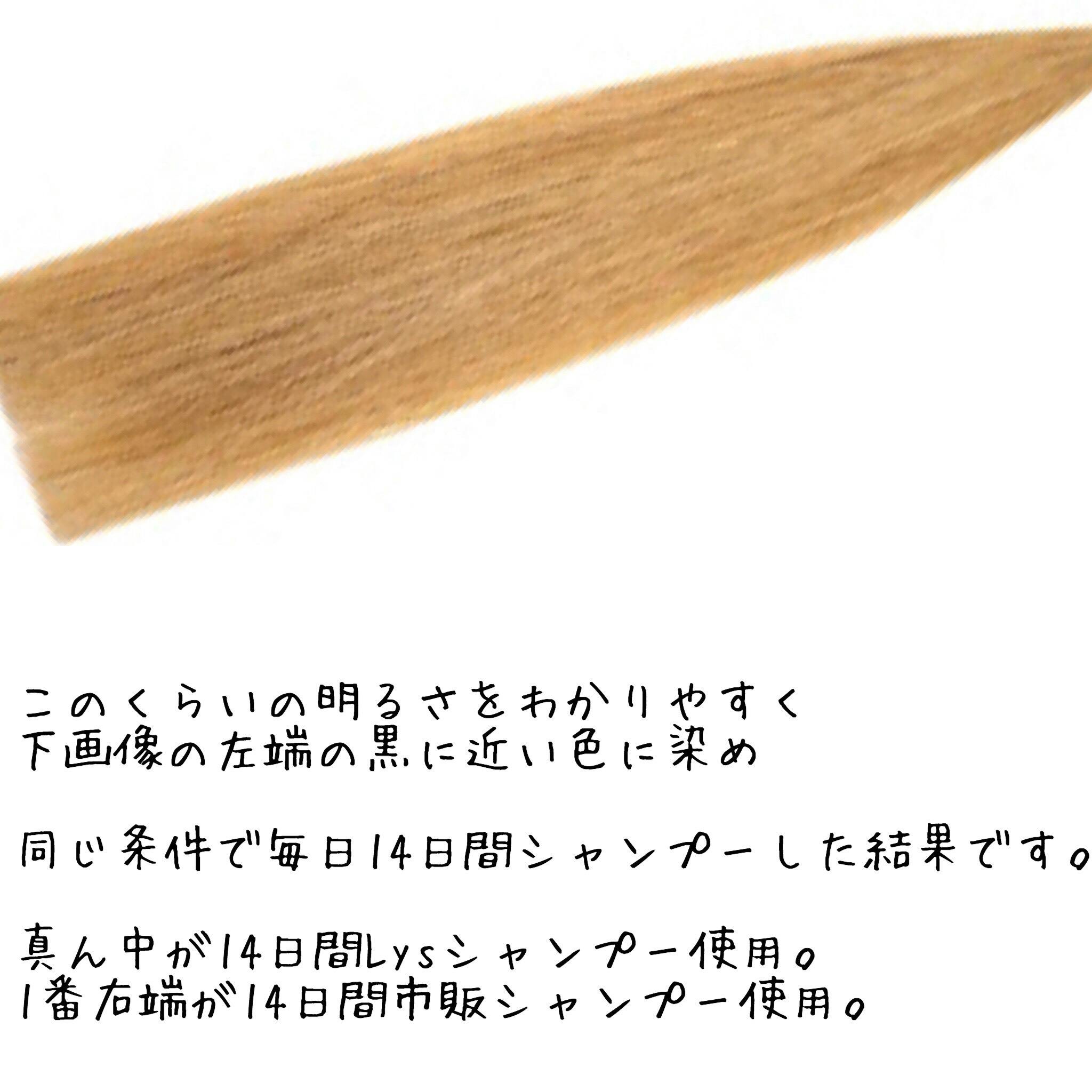 染めたての毛束を14日間、市販のシャンプーとLys01シャンプーを使用した実験をしました。