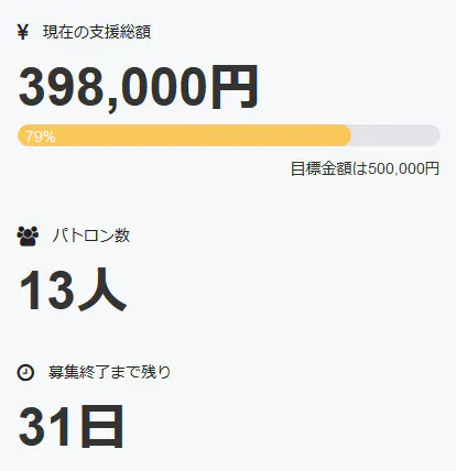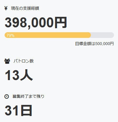 本日、新たに一名の方が過去最高額のご支援を行って下さいました。