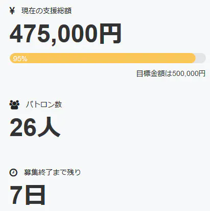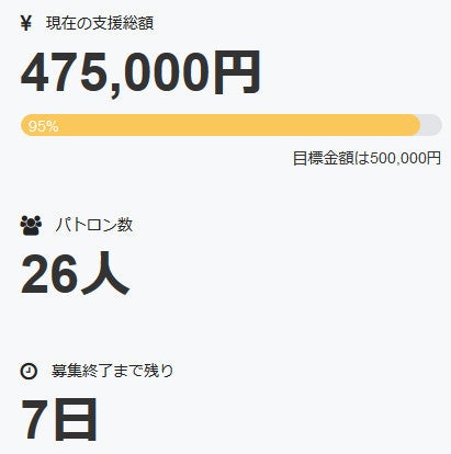 これにより調達率は95%にまで上昇、パトロン様は二十六名となりました。
