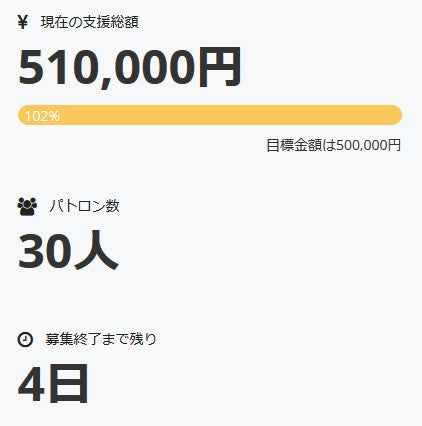 これにより調達率は102%にまで上昇、パトロン様は三十名となりました。