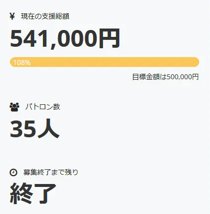 先程、今回の製作費調達プロジェクトが無事に終了致しました。