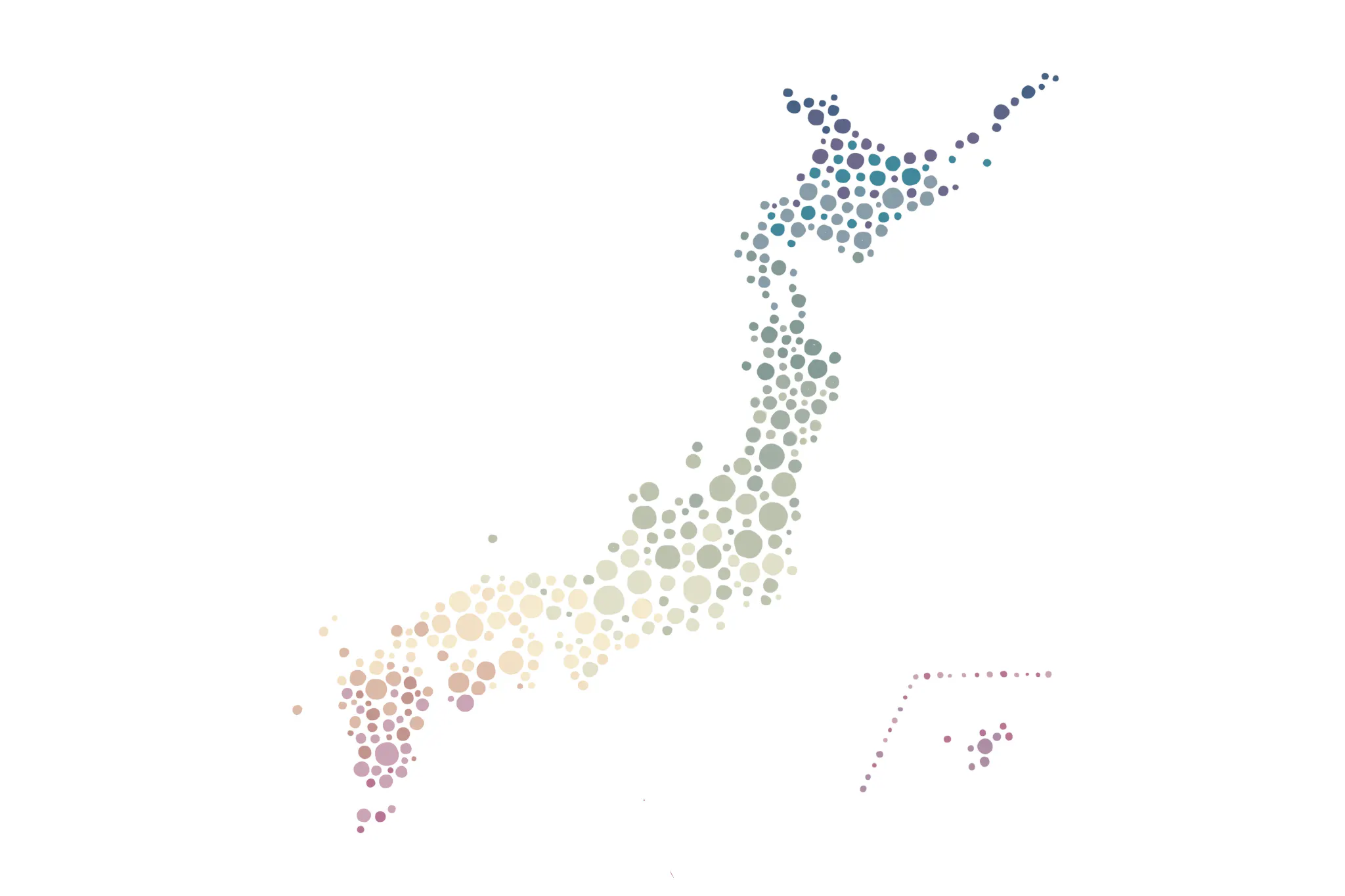 点描画の様に人と人を繋げ地方の食材と都会の消費者をつなげ影響をあたえていく。