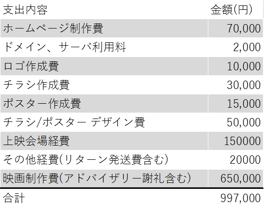 目標金額に達成しなくても、必ず計画を実行し、映画を完成させます。