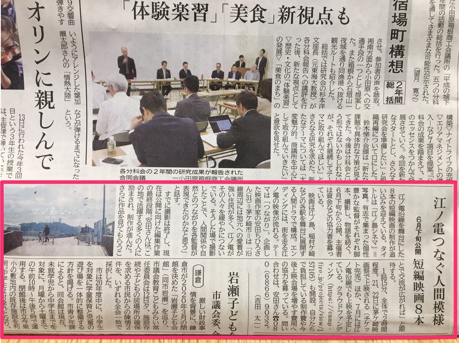 「江ノ島シネマ」が神奈川新聞、カナロコに掲載されました!