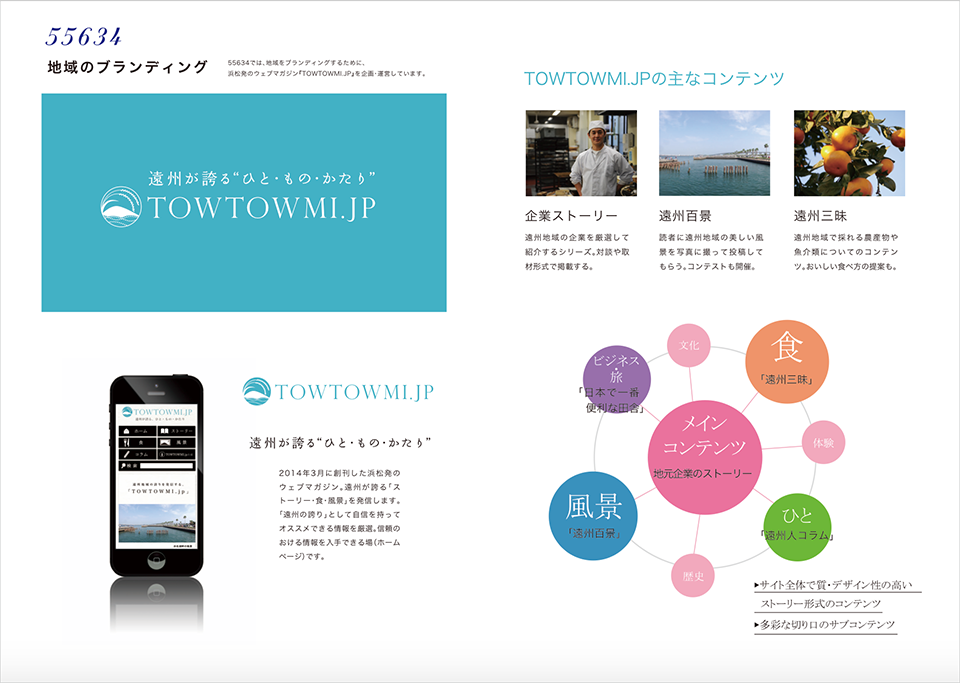 その柱となるのが、2014年3月に創刊した当社が運営するウェブマガジン、TOWTOWMI.JPです。TOWTOWMI.JPでは、「遠州が誇る、ひと・もの・かたり」をコンセプトに、浜松をはじめとする遠州地域の魅力的な情報を日々、発信しています。