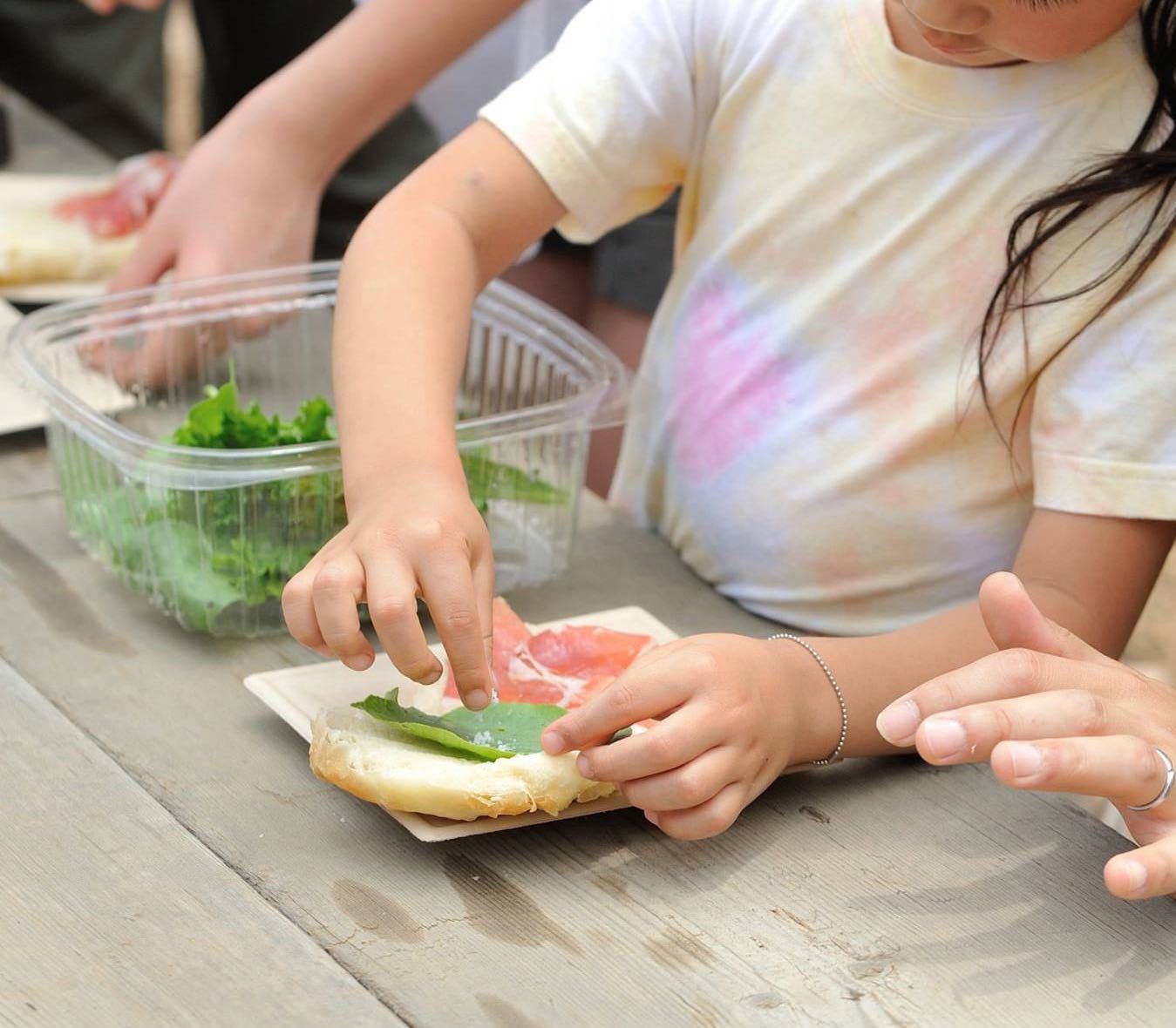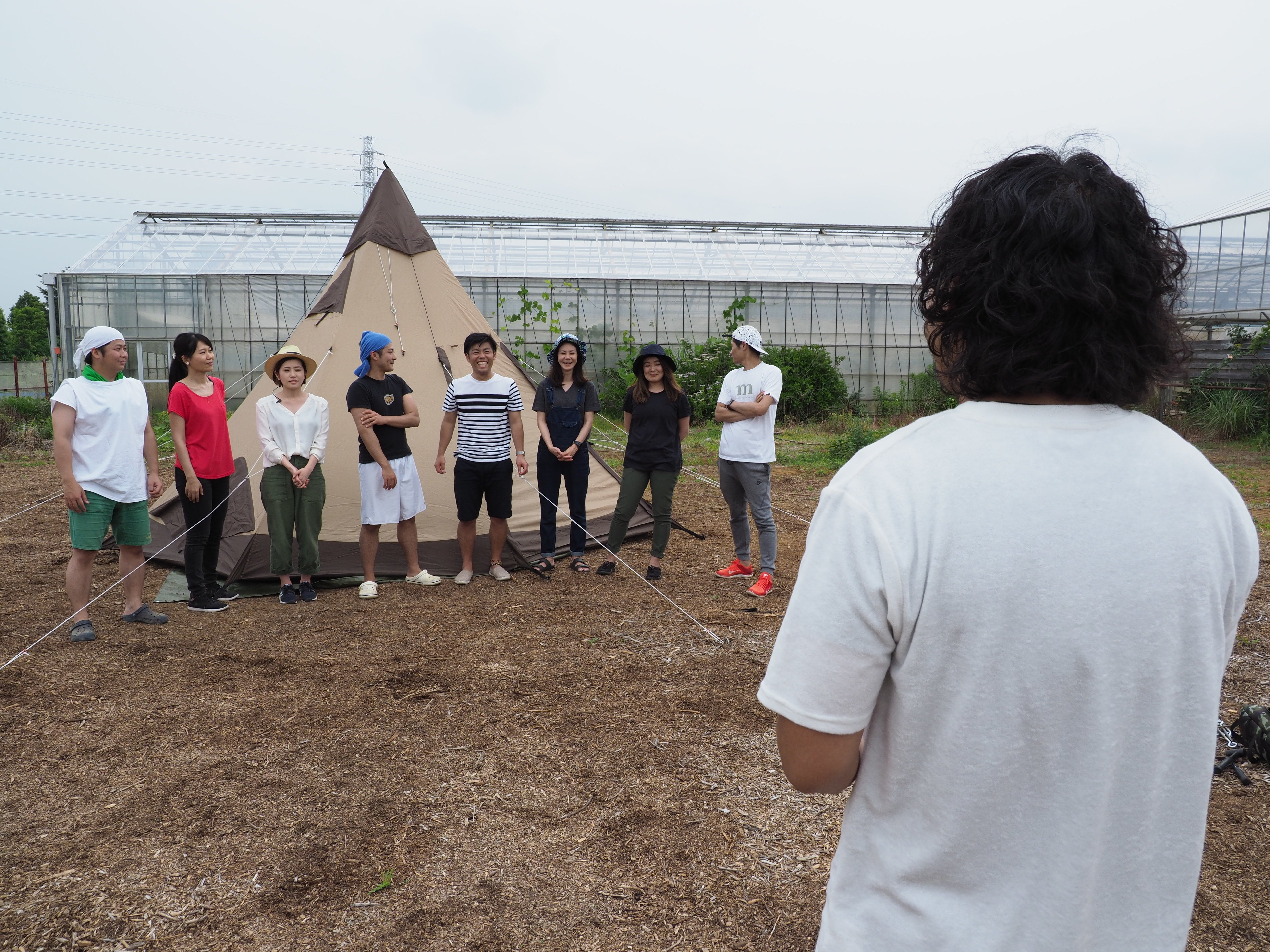 ハウスの骨組みをそのまま活かしたスペースでは、湘南の無農薬ハーブを摘んでサンドウィッチを作ったり、テントやタープ張りなどのアウトドアワークショップが楽しめたり、