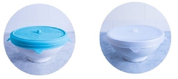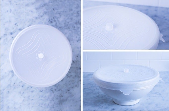 「UniLid」は柔軟で、どんな形にもフィットして密封できます。極端にくぼみが深い食器の場合には、対応できない場合もございます。