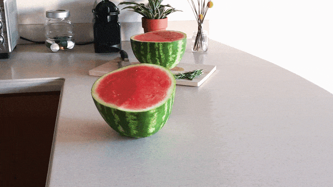 これからの季節はフルーツにもピッタリ!スイカの切り口を直接カバーして冷蔵庫へ!