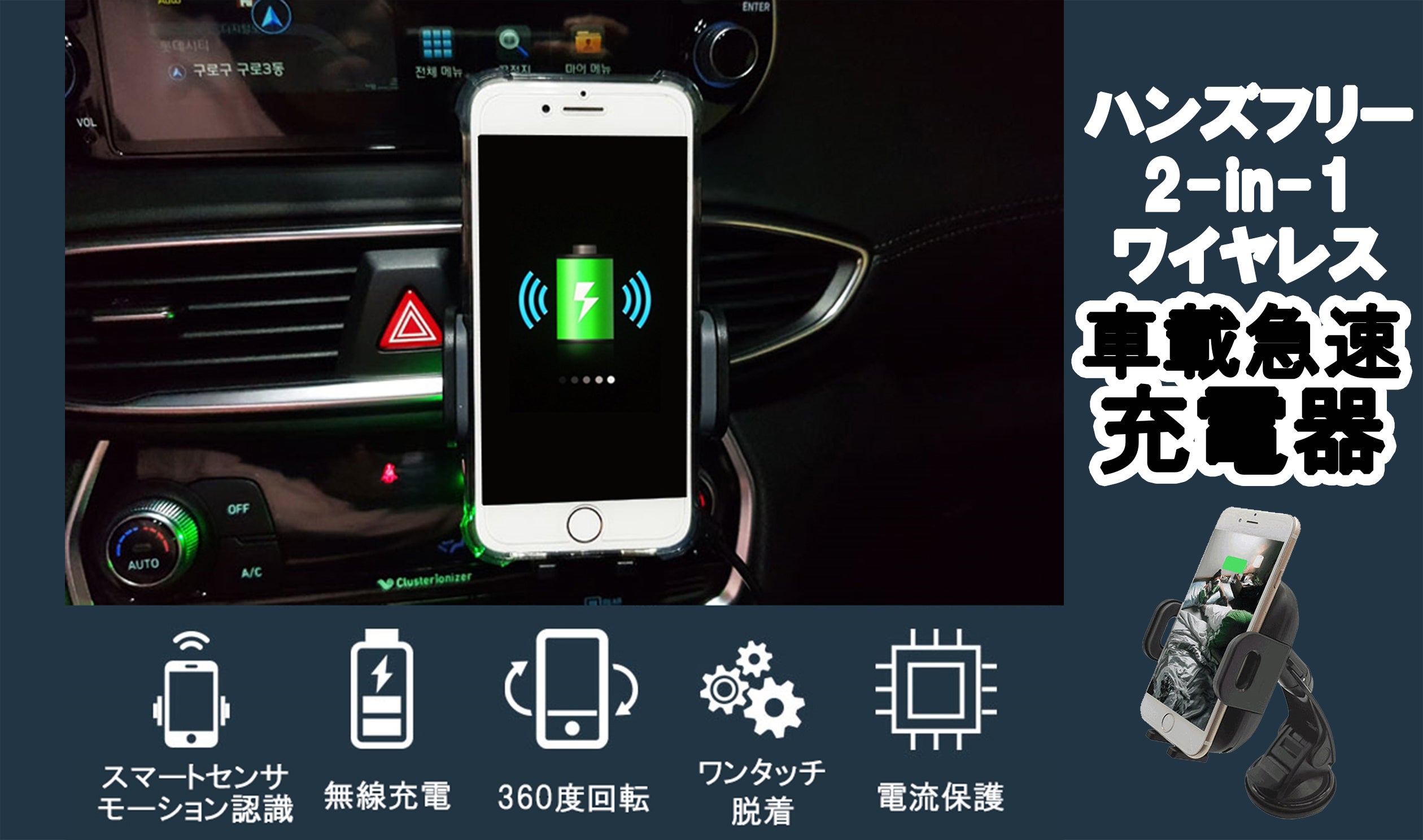 【2-in-1ワイヤレス車載充電器(オートピック)】