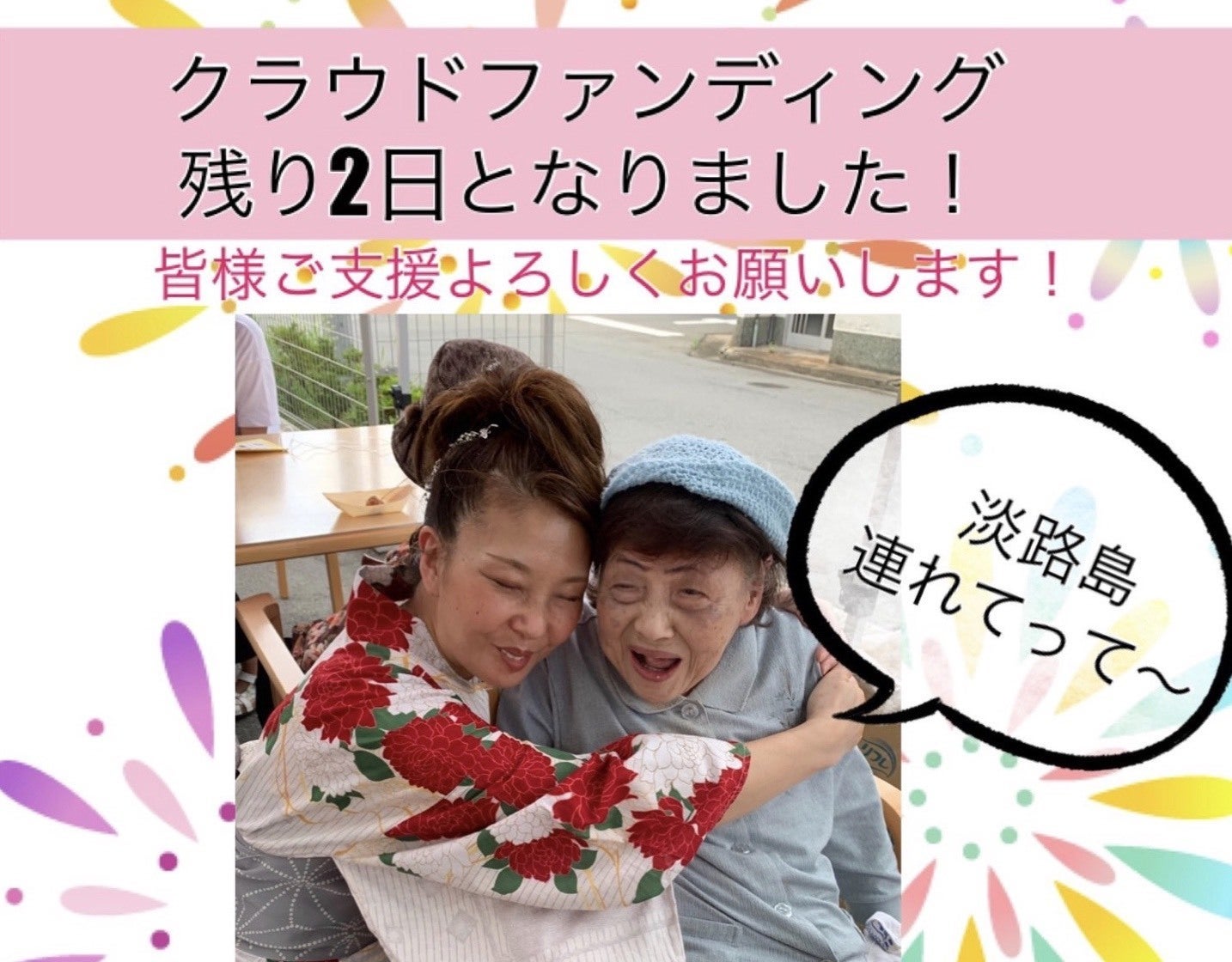 今回のプロジェクトでは、夢を叶える第1弾として、2019年10月に淡路島へ日帰り旅行に行く為、老人ホームのご入居者と一緒にクラウドファンディングを挑戦します!