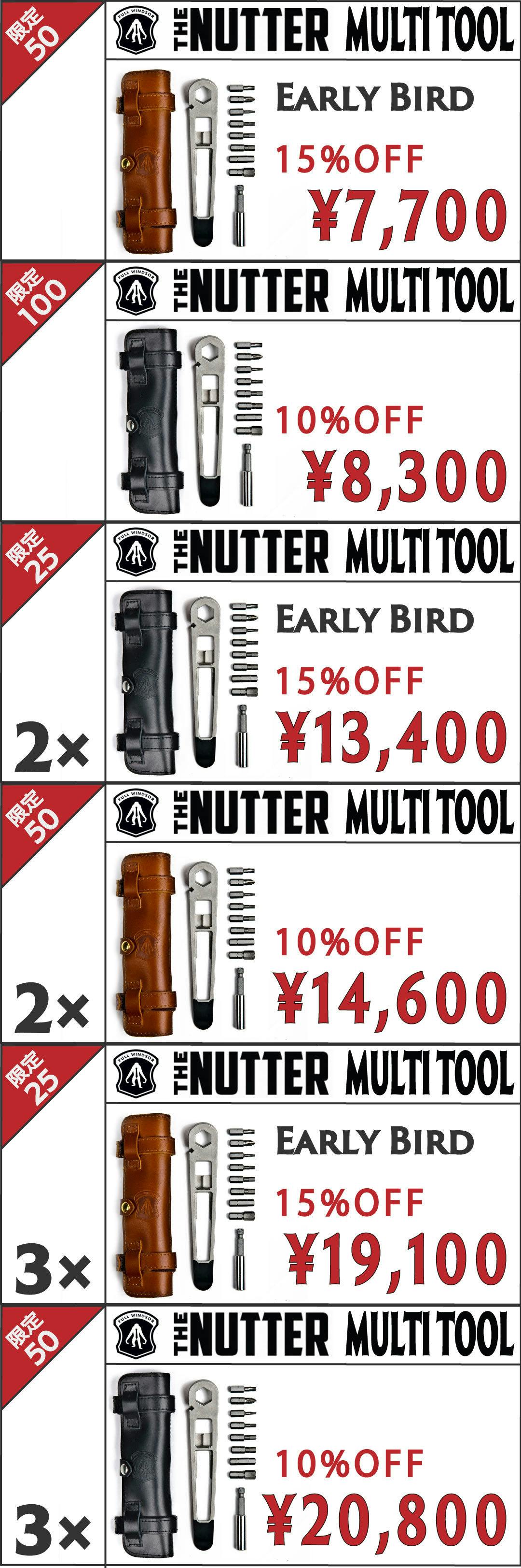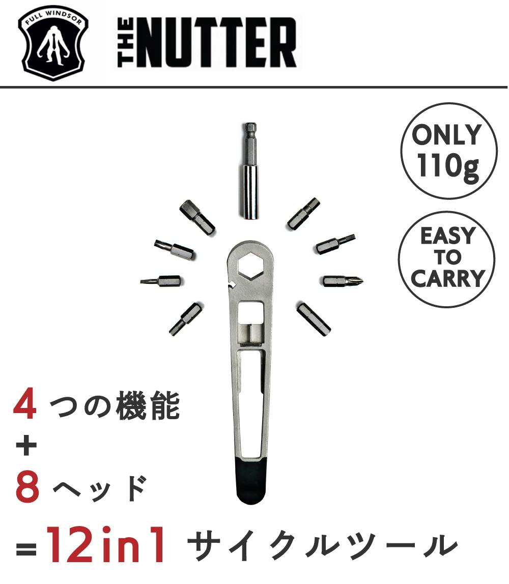 NUTTER MULTI TOOL はサイクリストに必需の4つの機能と8つの工具ヘッドで計12種類のツールを集約したマルチツールです。インベストメント鋳造により作られたこのツールはその多機能性に加え本体は110gという軽さ。持ち運びに便利な専用ポーチにより携帯性も高いのが特徴です。