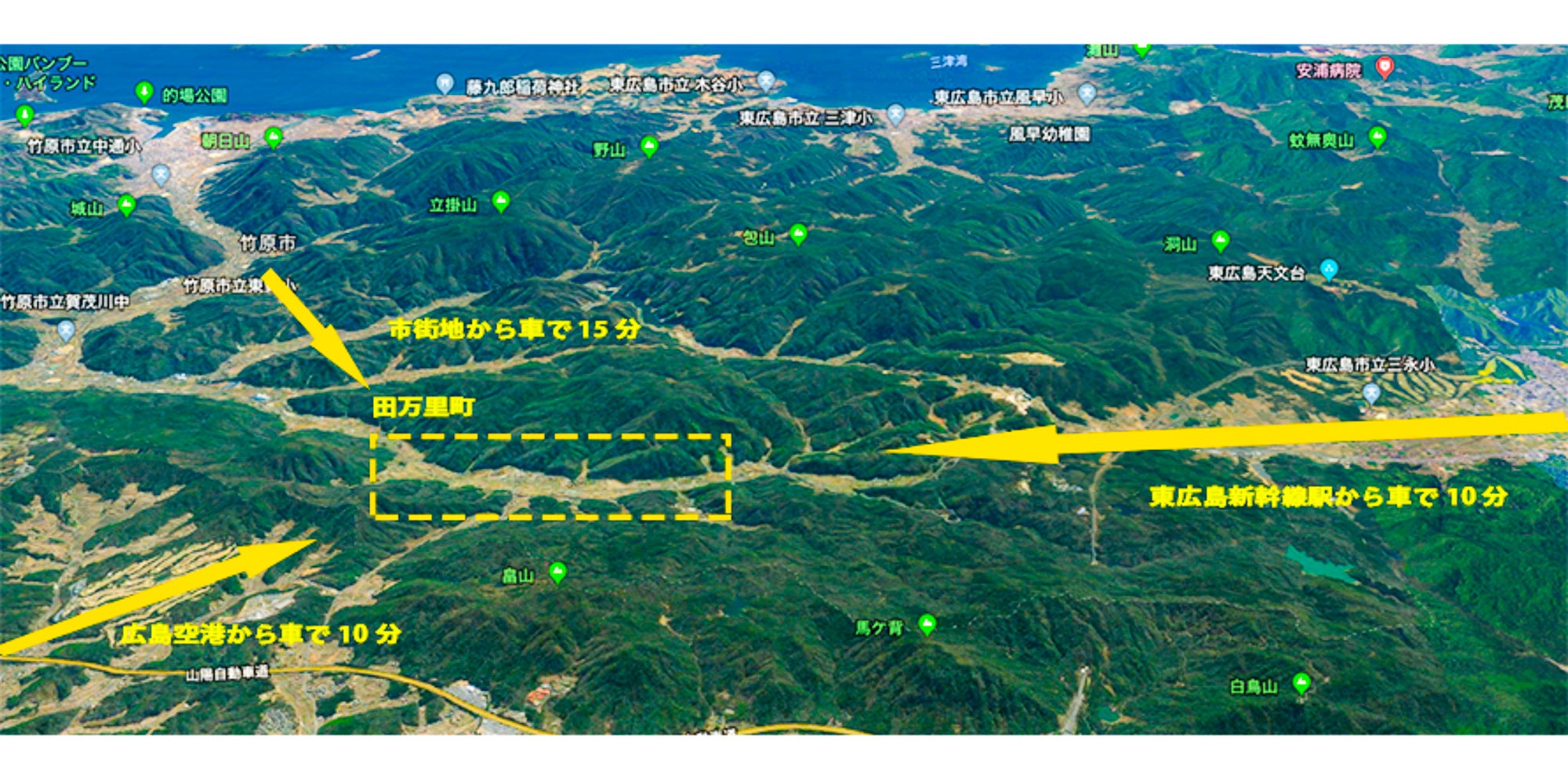 田万里町は、広島県竹原市の山間にある、稲作が中心の町です。広島空港から車で10分、東広島駅から車で10分、竹原の市街地から車で15分と好立地にも関わらず、過疎が急速に進んでいます。世帯総数176世帯、総人口422人。そのうち20〜30代の若者はたったの24人です。