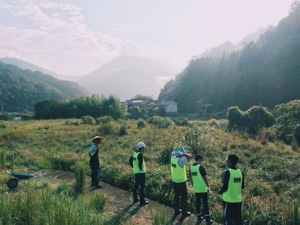 今回のプロジェクトの構想は、西日本豪雨の復興ボランティア活動をThe CAMPusとして行った際に、地域住民の皆様と自治体(竹原市)の皆様と多くの時間を共有しながら徐々に形作っていきました。そして2019年に田万里町の自治会会長が代表になり「田万里町『有機あぶらの里』協議会」が発足しました。