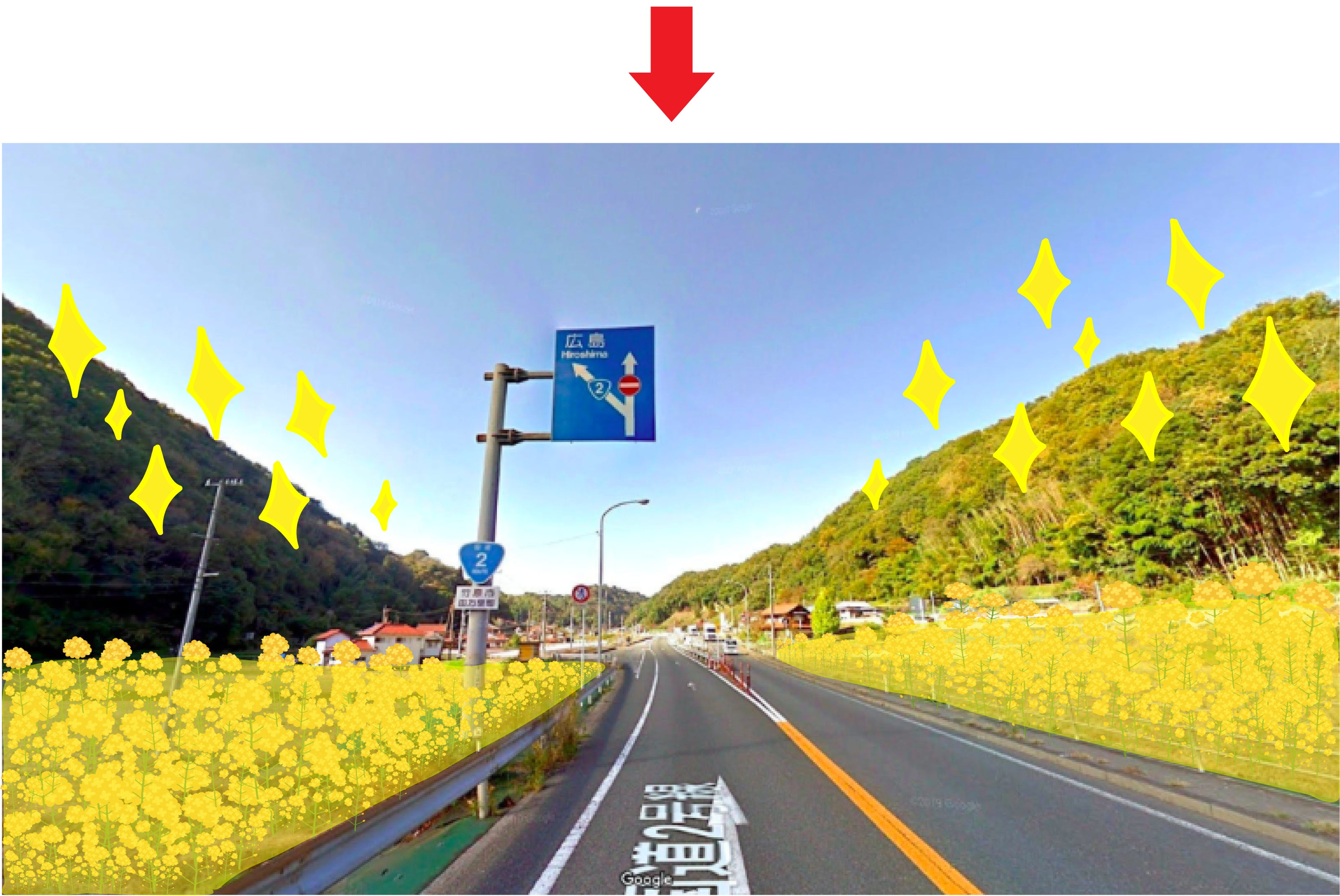 国道沿いに菜の花の絶景が広がることで、今まで通り過ぎていた人々が、足を止め散策し、この町を知るきっかけにもなります。今まで気にも止められなかった田万里町に人々が訪れることで、活気が生まれ、ここで暮らす人々も気持ちが若返るくらいに嬉しくなるでしょう。