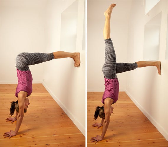 逆立ちして+5度前傾して片脚ずつ空へプッシュしてください!