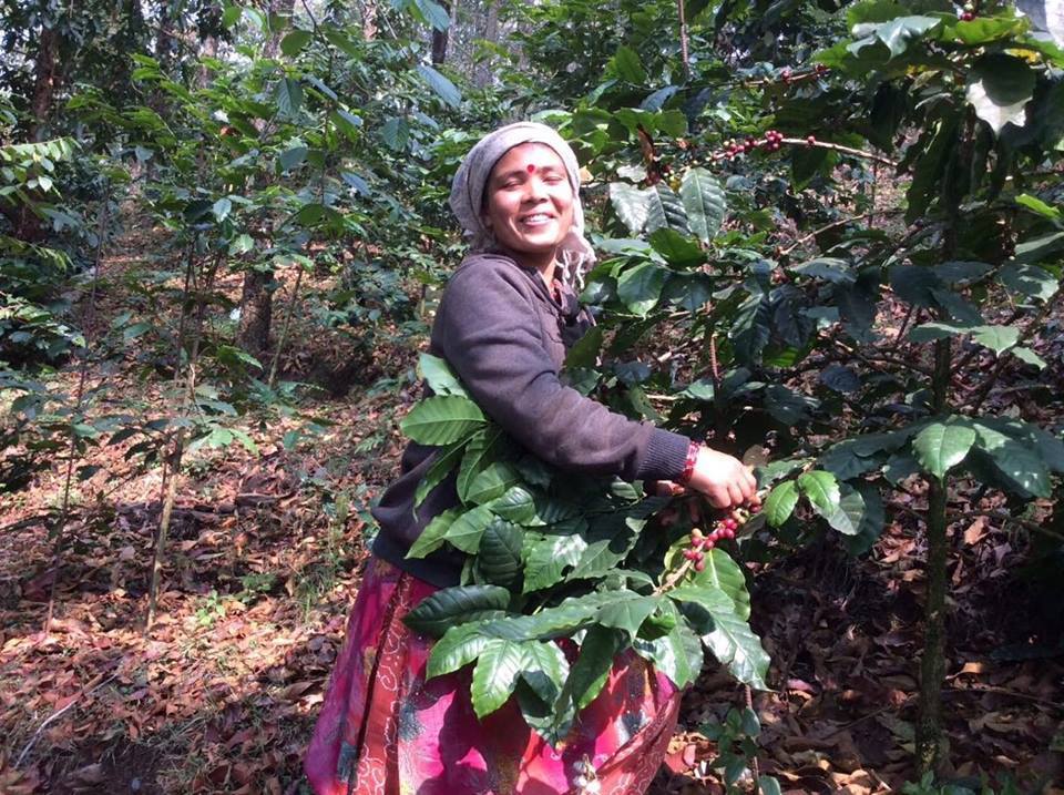 ネパールのコーヒー農園は、ヒマラヤの麓、山間部の森の中にあります。真っ赤に熟した「コーヒーチェリー」は手摘され、ヒマラヤの水で洗われて天日干しし、ネパールコーヒー「ホワイトマウンテンズ」が生まれます。